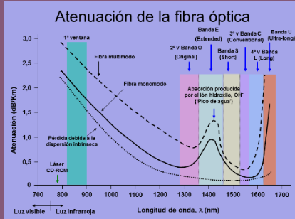 Debido a la presencia de impurezas en la fabricación de la fibra óptica, exactamente en la preparación del vidrio, existen longitudes de onda en la cual la fibra presenta variaciones de atenuación, muy notorias, haciendo que el proceso de fabricación haya ido migrando a formas mas eficiente y que generen menos contaminantes en la fabricación de la fibra